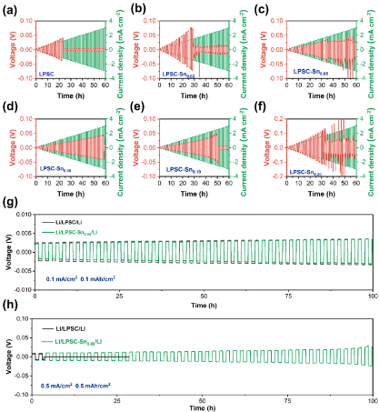 图1.电解质掺杂与锂金属修饰策略提高全固态锂金属电池中Li5.5PS4.5Cl1.5的空气稳定性和电化学性能