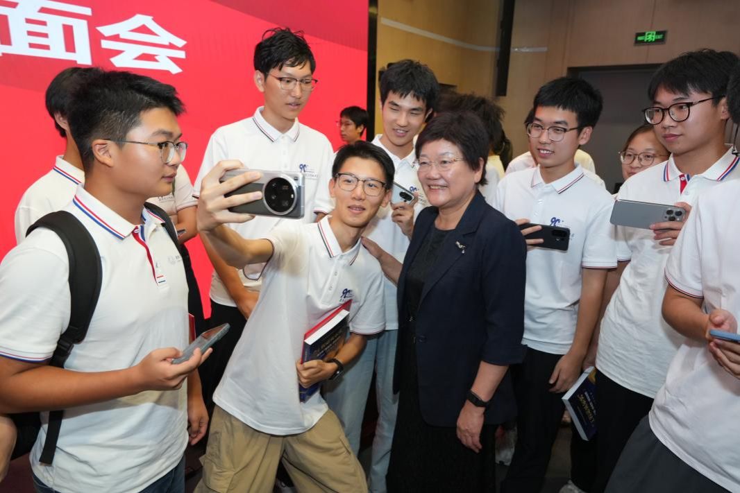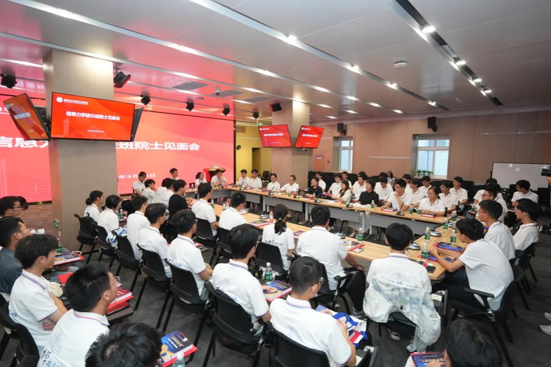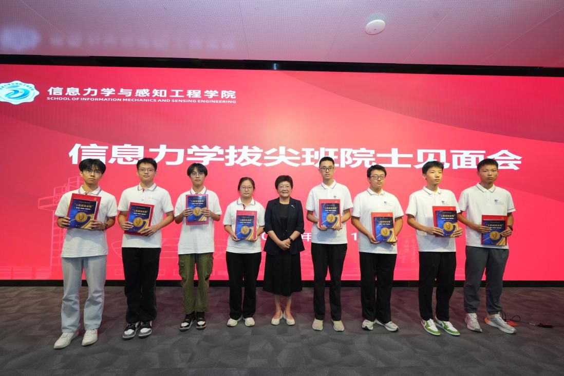 在信息力学拔尖班院士见面会环节,郑晓静院士亲切地向信息力学拔尖班的员工们一一颁发了承载着殷切期望的录取通知书,并赠送了她的著作《工程诺贝尔奖》。她寄语同学们从书中记录的诸多改变世界的工程奇迹及其背后的科学思想中汲取智慧,感悟创新的真谛,立志成为未来科技领域的“点睛”之人。